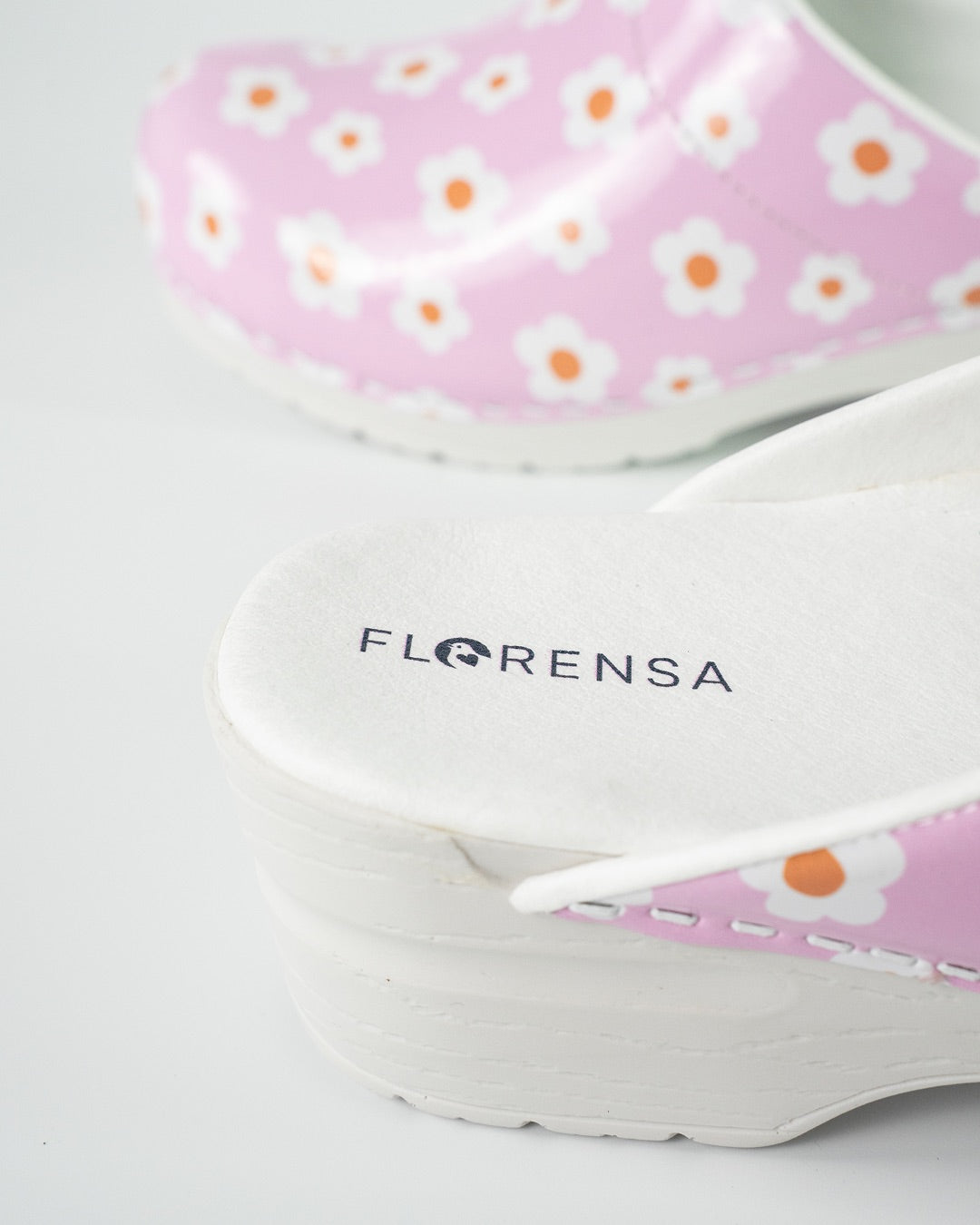 The Florensa Flex clogs in Daisy Pink are high-quality medical clogs, designed in the Netherlands in collaboration with Studio Sanita and produced in our own factory in Portugal.