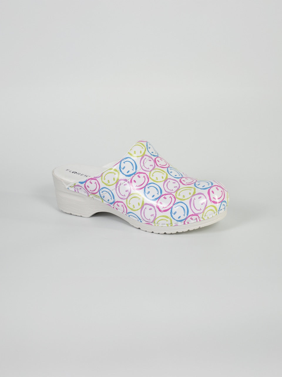The Florensa Flex clogs in Smiley White are high-quality medical clogs, designed in the Netherlands in collaboration with Studio Sanita and manufactured in our own factory in Portugal.